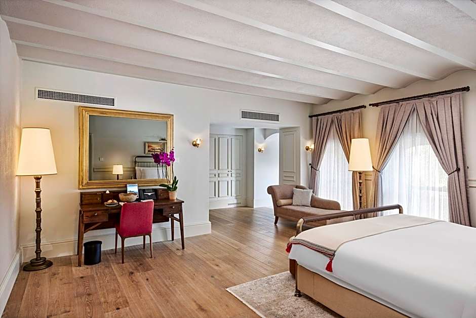 1 KING BOSPHORUS JUNIOR SUITE is 592 square feet and includes a king-size bed 150-183 width plus a sofa bed and rollaways on demand plus extra beds on demand, ironing set, safe, bathrobes, and slippers.